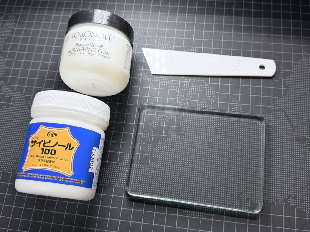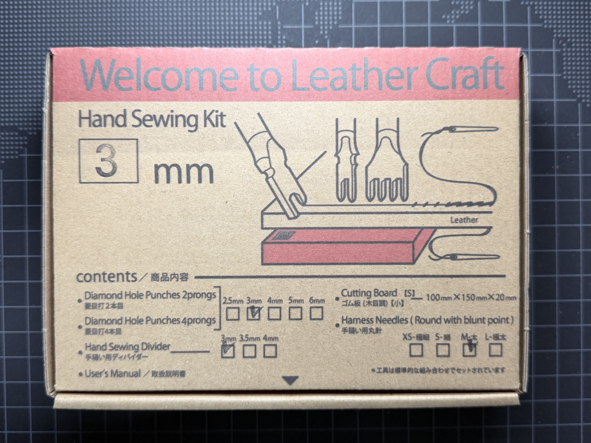 カットされた革のキットを使って、接着・菱目打ち・コバ処理まで全部やってみます。